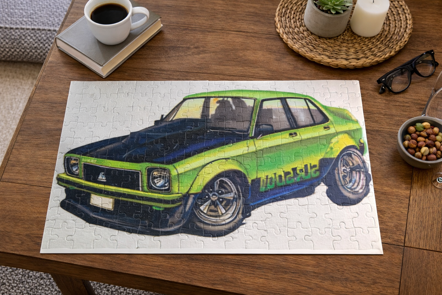 Green Car Puzzle 70 Piece Jigsaw Puzzle as a unique personalised gift for a family member.